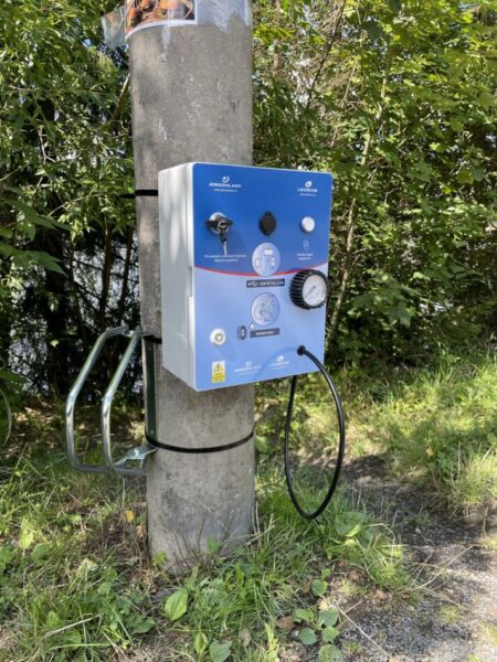 Kompresor s označením KOM-2 umožňuje dofoukat kolo, koloběžku i automobil. Lze jej umístit na stěnu, betonový sloup veřejného osvětlení nebo stožár veřejného osvětlení.