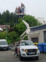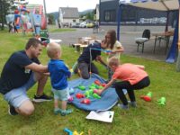 Děti se mohly vyřádit na skákacím hradu, soutěžit v mnoha disciplínách a zábavních hrách typu chytání rybiček nebo trefování balonků do pusy papírové příšery :-). Kdo se nebál výšek, ten mohl vyrazit shlédnout firemní areál z výšky naší mobilní plošiny. Pozadu nezůstali ani dospělí a bavili se jako malí! Moderování a povzbuzování si vzala na starosti výkonná ředitelka firmy – paní Jana Drápalová. Bylo vidět, že se dost možná minula povoláním a moderování ji vyloženě bavilo!!